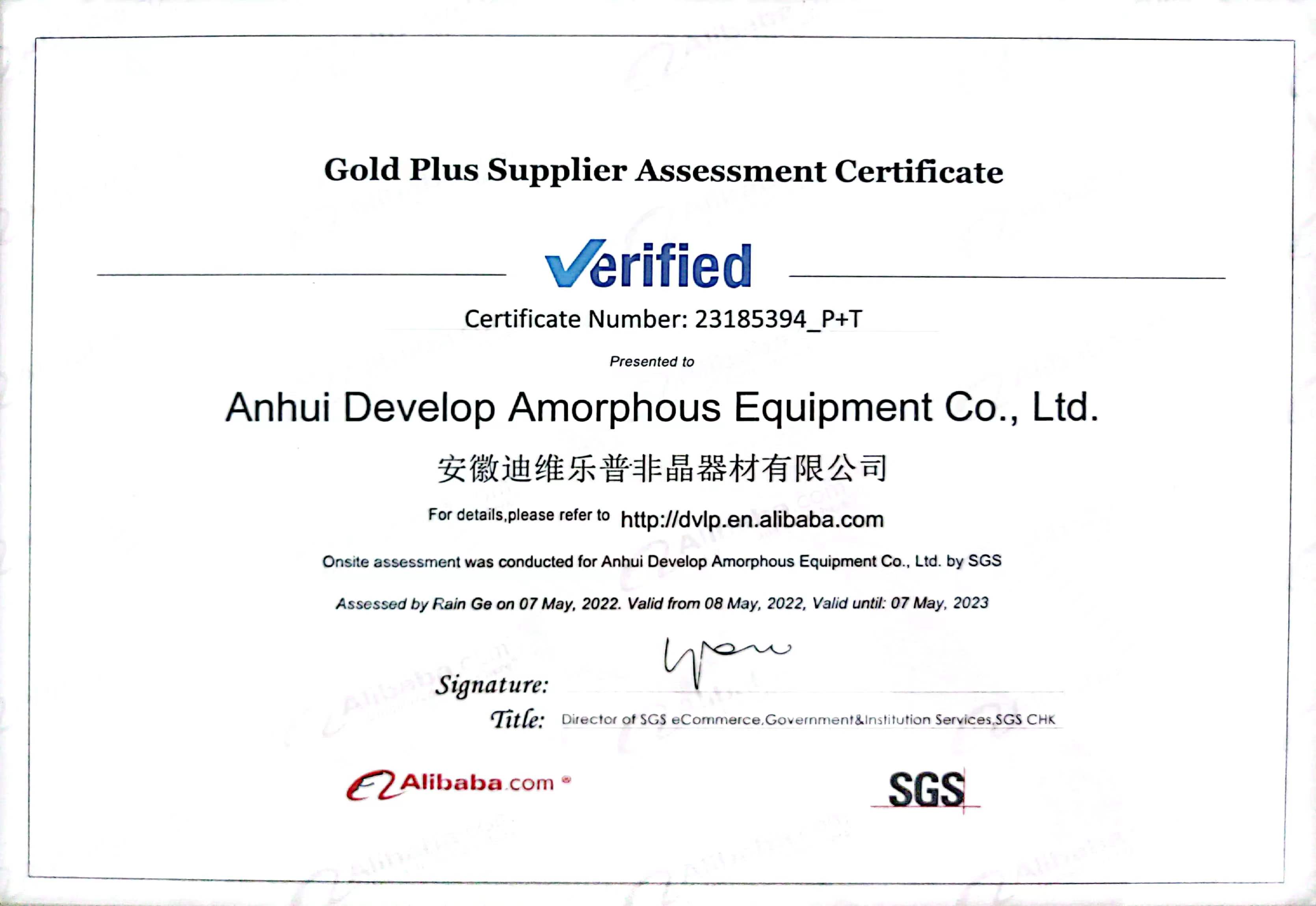 • SGS質(zhì)量體系證書(shū)